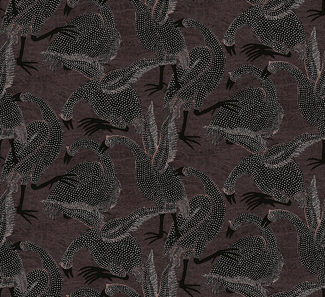 The Guinea design sets a scene of guinea fowl scratching and flapping their wings against a background of clay. They stand out, but in an aesthetically pleasing way, bringing a touch of humour too.