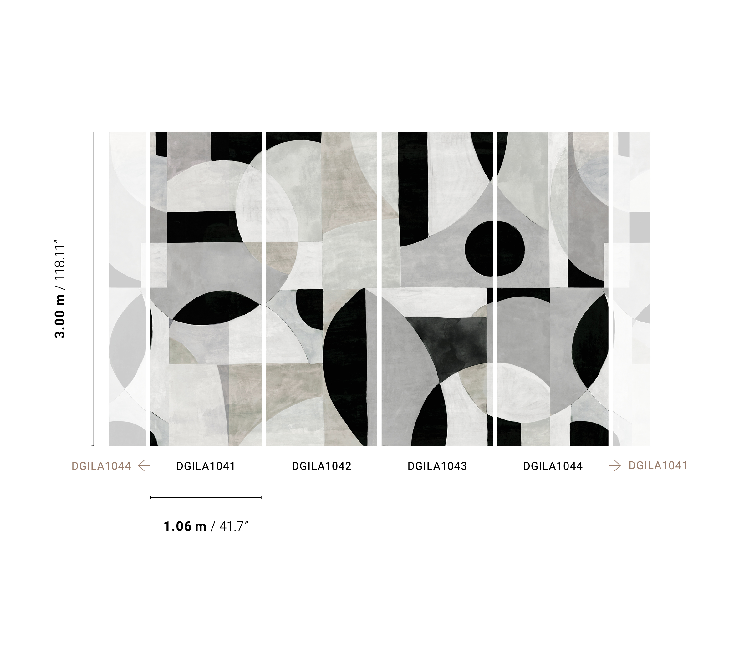 La création Patina va encore plus loin dans l’abstrait en présentant une association complexe de formes colorées. En agrandissant le motif, on obtient un résultat monumental magnifique.
